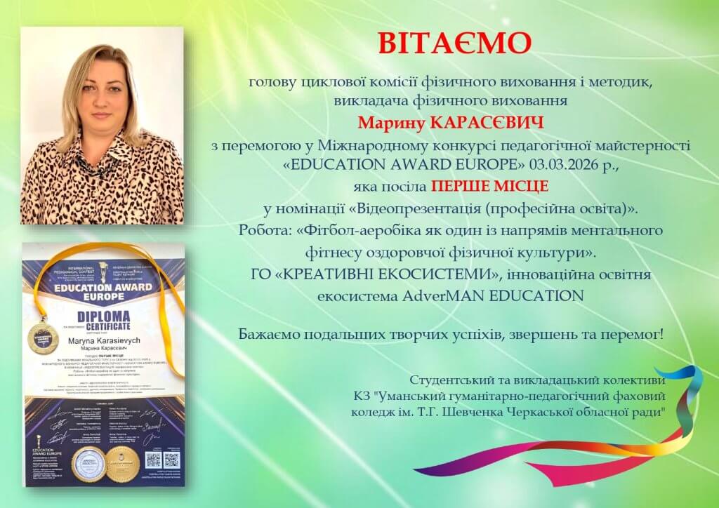 У КЗ «Уманський гуманітарно-педагогічний фаховий коледж ім. Т.Г. Шевченка Черкаської обласної ради» триває активна робота з національно-патріотичного виховання молоді, у межах якої для здобувачів освіти 102-П групи (класний керівник Черниченко А.В.) було проведено тематичну годину спілкування, присвячену багатству та символіці Читати далі …
