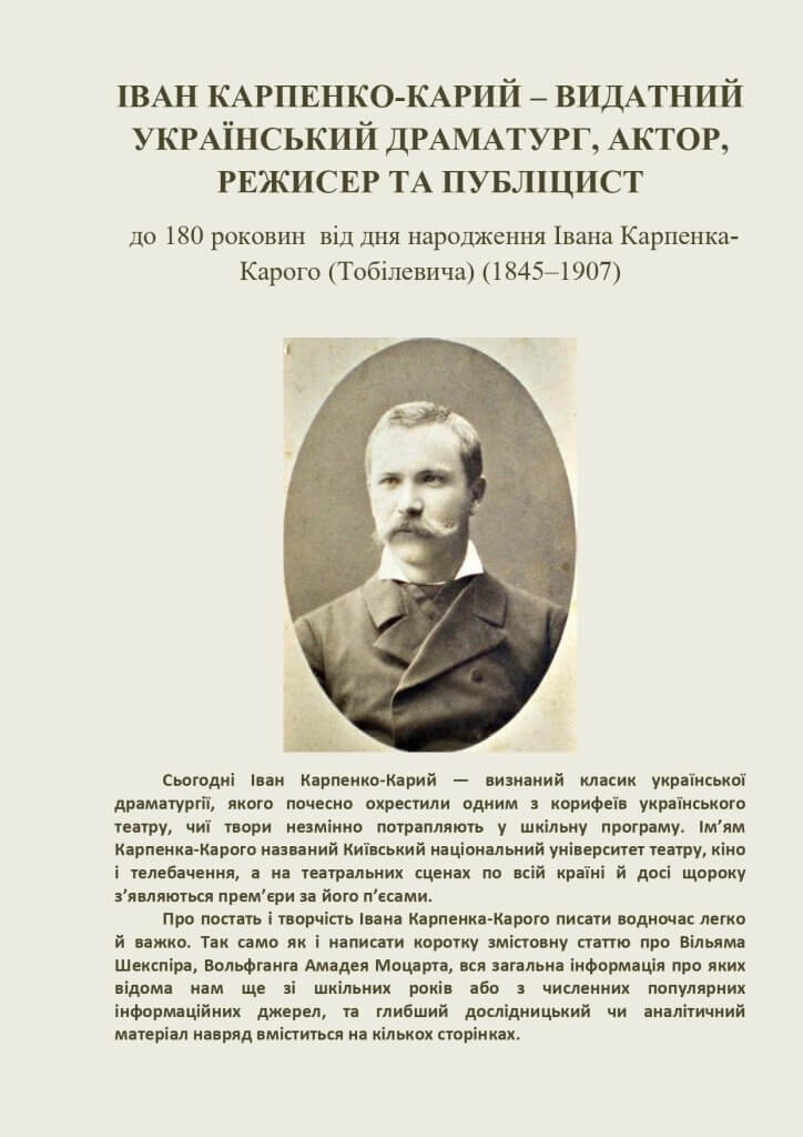 ІВАН КАРПЕНКО-КАРИЙ – ВИДАТНИЙ УКРАЇНСЬКИЙ ДРАМАТУРГ, АКТОР, РЕЖИСЕР ТА ПУБЛІЦИСТ